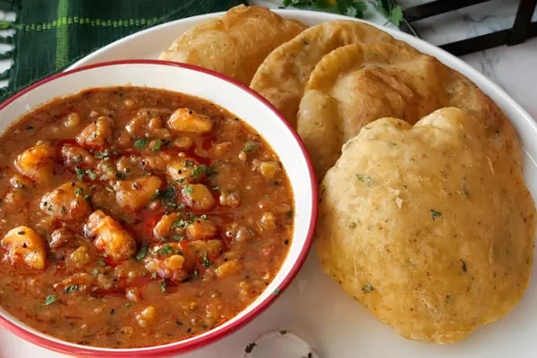 Tender mutton slow cooked in a rich, spiced gravy, served perfectly with crispy puris.